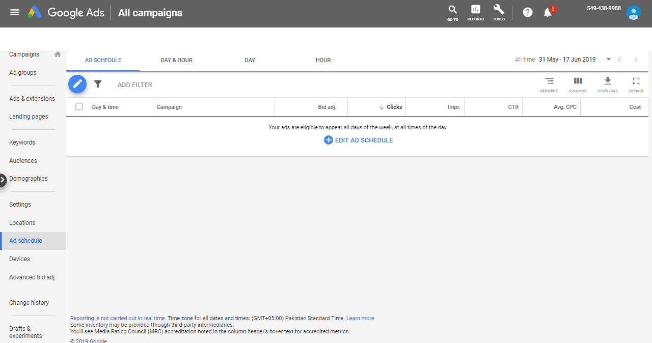 FIND AD SCHEDULE UNDER PERFORMANCE IN GOOGLE ADWORDS