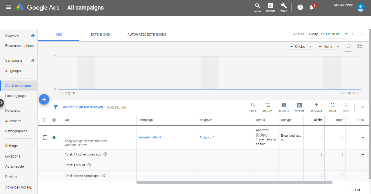 Below is the section of Ads in Google Ads/ AdWords. Ads are the main component for your paid marketing because it appears in the search engine results page (SERP) when user search for your targeted keywords. Proper optimized paid Ads can help you to get maximum traffic on your website.