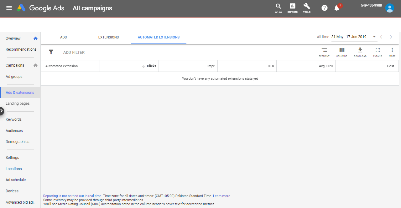 FIND EXTENSIONS UNDER PERFORMANCE IN GOOGLE ADWORDS